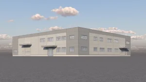 Aufgrund der schlechteren Tragfähigkeit des Bodens ist die Lösung mit der Stahlkonstruktion viel rationeller, da sie keine tiefen Pfähle erfordert, wie es bei einer schwereren Betonkonstruktion notwendig wäre. Das Mehrzweckgebäude besteht aus zwei parallelen Teilen, die jeweils 20 m × 35 m gross und 7 m hoch sind. Einer der beiden Teile umfasst zwei Etagen mit Büros und einem Lagerbereich. Das Gebäude ist mit allen Fenstern, Aussentüren und Dachkuppeln ausgestattet.